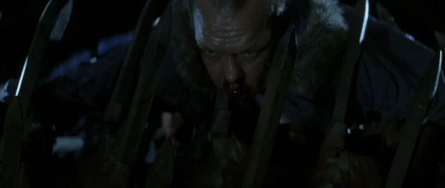 - D-Tox (Eye See You) (2002) [Frank Slater]: Impaled twice on a set of spikes from a snow machine at the end of a struggle with Sylvester Stallone.