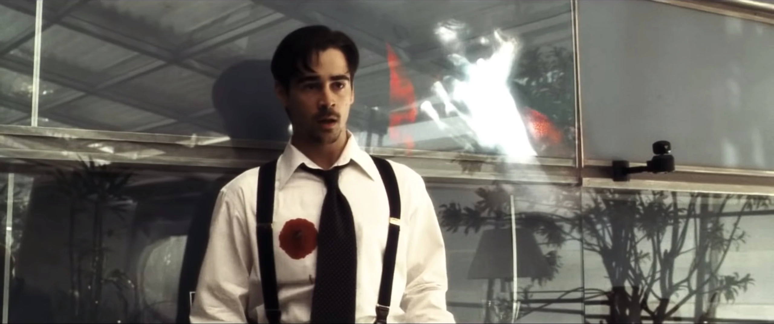 - In Bruges (2008) [Ray]: Shot repeatedly in the stomach and back by Ralph Fiennes; the movie ends with Colin being loaded into an ambulance, but his narration indicates that he's dying. (It's still ambiguous if he survives or not.)