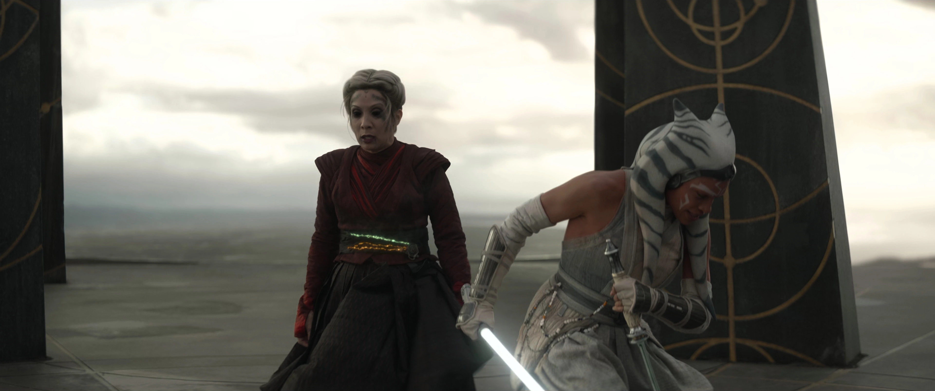 - Ahsoka: Part Eight: The Jedi, The Witch and The Warlord (2023) [Morgan Elsbeth]: Slashed across her stomach by Rosario Dawson with a lightsaber.