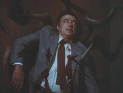- Salem's Lot (1979 miniseries) [Dr. Bill Norton]: Impaled on the antlers of a trophy by James Mason.