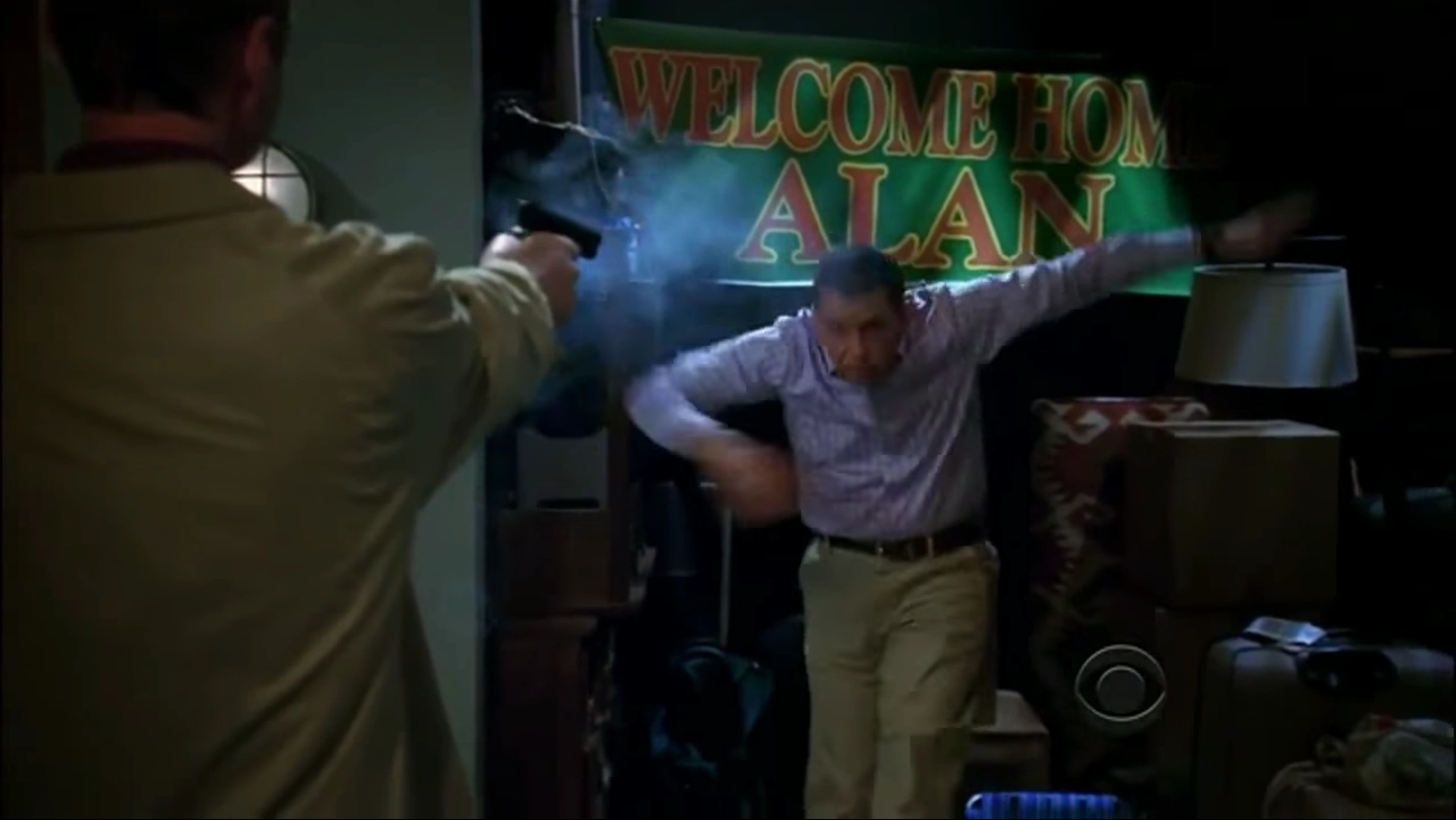 - Two and a Half Men: Frodo's Headshots (2011) [Alan Harper]: Shot with a handgun by Ryan Stiles during a dream sequence. (Jon survives the episode in reality.) (played for comic effect)