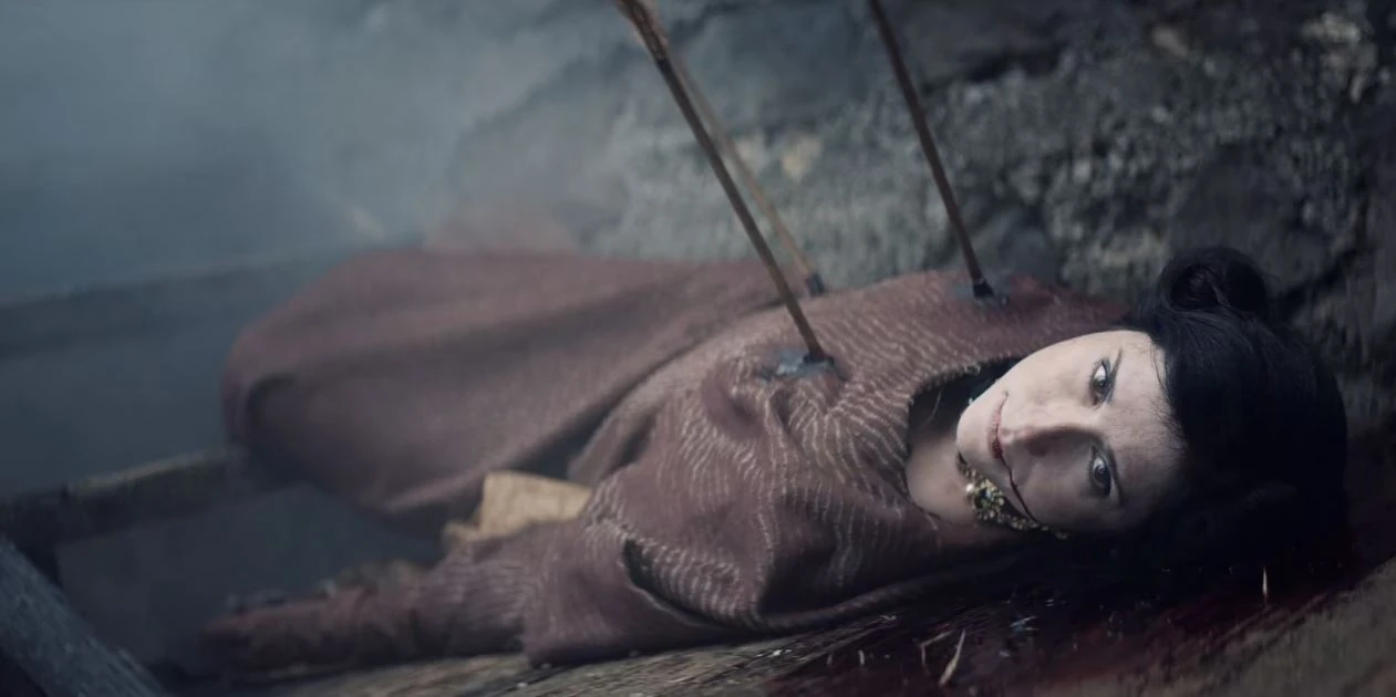 - The Witcher: Much More (2019) [Vanielle of Brugge]: Shot with three arrows (two on her upper chest and one in her abdomen) by Nilfgaardian soldiers when they shot through Mimi Ndiweni's created portal during the Battle of Sodden Hill.