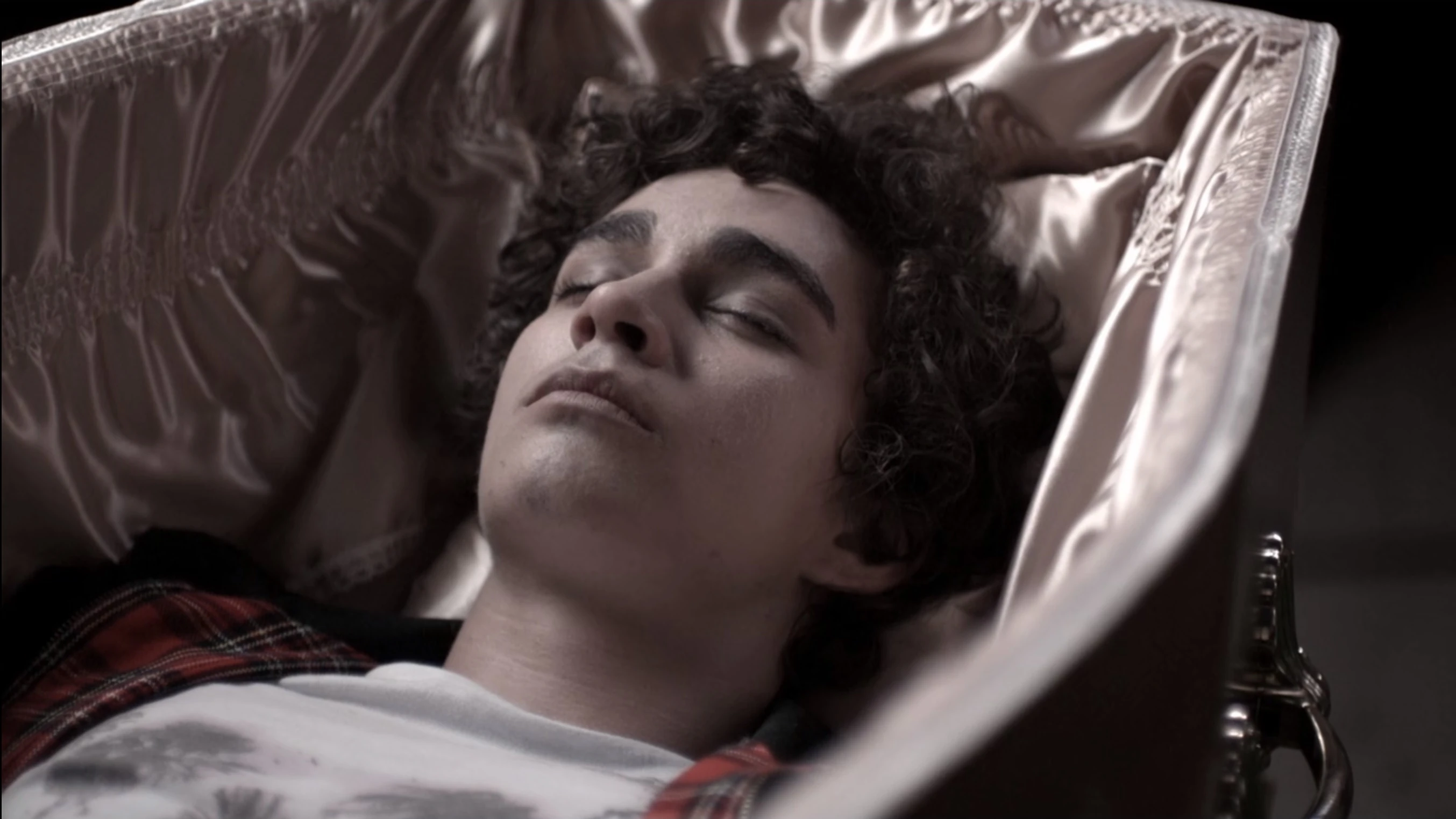 - Misfits: Episode 6 (2009) [Nathan Young]: Impaled on a fence post after falling from the community center roof at the end of a struggle with Jessica Brown Findlay. His body is shown later in his coffin after the funeral, where he revives and discovers his power is immortality.