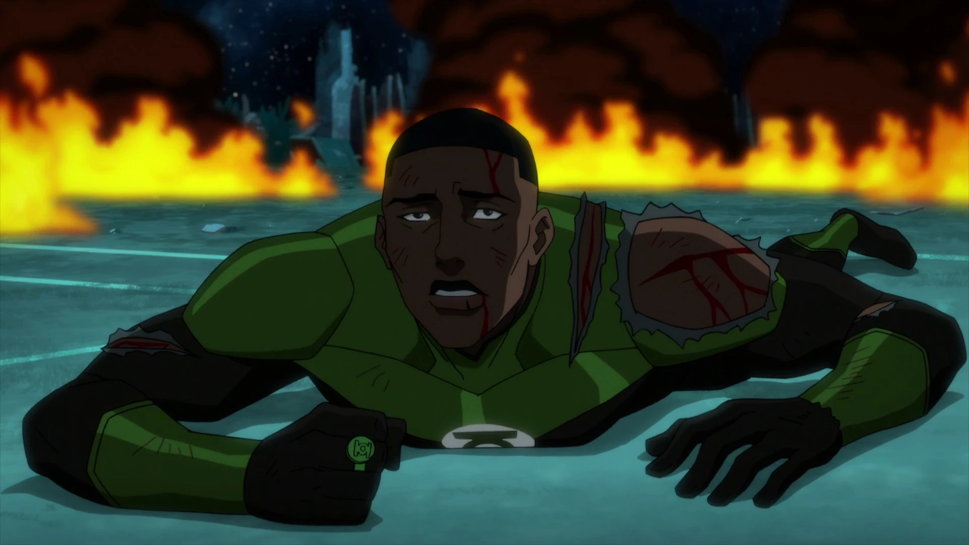 - Justice League Dark: Apokolips War (2020; animated) [John Stewart a.k.a. Green Lantern/Swamp Thing]: "John Stewart aka Green Lantern" is killed when Jason O'Mara, at Tont Todd’s suggestion, redirects some of the magma being drained from Earth to Oa, burning many (John Stewart’s remains are shown) to skeletons. "Swamp Thing" explodes along with the Paradooms and Reaper at one of the magma-draining plants.