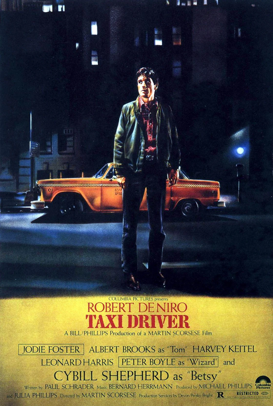 A mentally unstable Vietnam War veteran (Robert De Niro) works as a night-time taxi driver in New York City where the perceived decadence and sleaze feeds his urge for violent action, attempting to save a pre-adolescent prostitute (Jodie Foster) in the process.